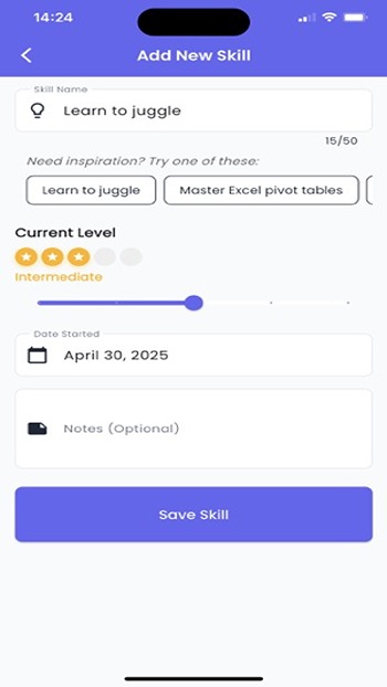 You can track anything—from physical skills like yoga and juggling to mental tasks like learning coding, language, or math.