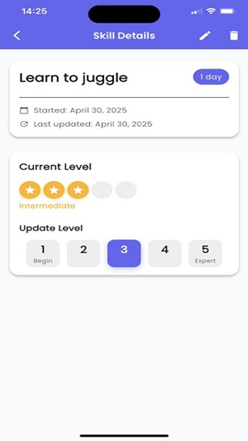 Simple navigation: Easily log progress, review stats, and check your skill history.